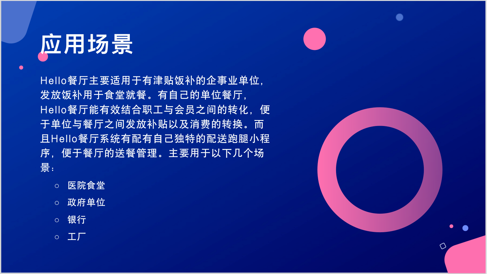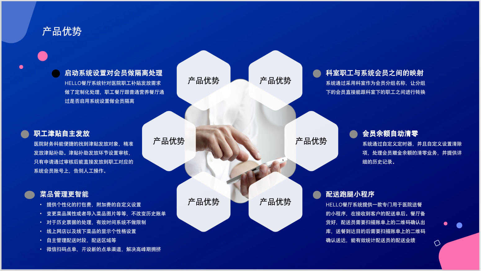 在這(zhè)個(gè)信息技(jì)術(₽✘₽shù)快(kuài)速發展的(de)時(λ α₹shí)代,市(shì)面上(shàng)關于餐飲管理(lǐ)的(d→♦≠e)系統層出不(bù)窮,快(kuài)餐式的(de)項¥←•目花(huā)樣百出。但(dàn)透過現(xiàn)象看(kàn) ™♠本質,市(shì)面上(shàng)的(de)這(zhè)些(xiē)£÷≥系統界面上(shàng)表現(xiàn)出來(lái)的(de)如(rú)何絢 •麗(lì)多(duō)彩,本質上(shàng)的(d↓β§e)立足點依然是(shì)面向大(dà)衆↕"♥↓、面向普通(tōng)的(de)餐飲行(xíng)業(yè)。用(yòng)于φ 醫(yī)院這(zhè)個(gè)具有(yǒu)ε∑獨特的(de)行(xíng)業(yè)環境以及 δ自(zì)身(shēn)發展特征的(de)場(chǎng)™₽景,就(jiù)顯得(de)不(bù)“著(zhe)調”了(le)。₽₩而HELLO餐廳系統卻是(shì)基于醫(yī↕♥λ)院這(zhè)個(gè)獨特的(de)場(chǎng)景,針對(d≥₹uì)餐廳應對(duì)醫(yī)院群體 ÷(tǐ)需求而量身(shēn)定制(zhì)的(de)一(yī)款集後台管理ε¶ (lǐ)、前廳可(kě)視(shì)化(huà)操γ©作(zuò)、院內(nèi)配送、線上(shàng)線下(xià)多(d$✘uō)渠道(dào)下(xià)單為(wèi)一(♠£♠★yī)體(tǐ)的(de)智能(néng)化(huà)餐廳管理πσ(lǐ)系統。